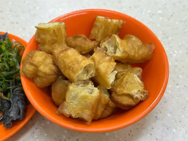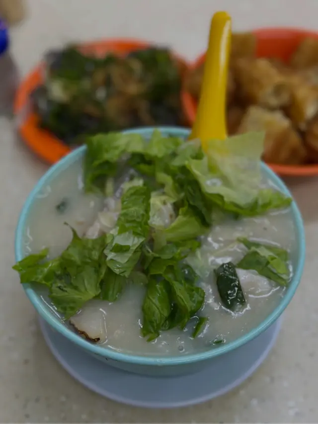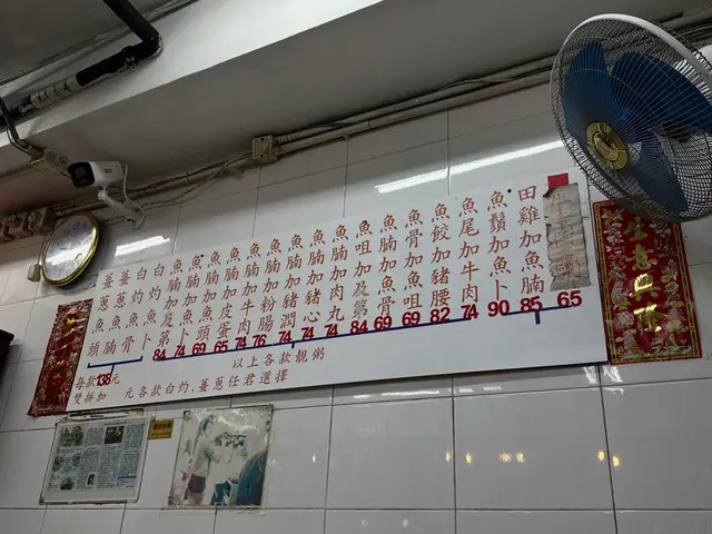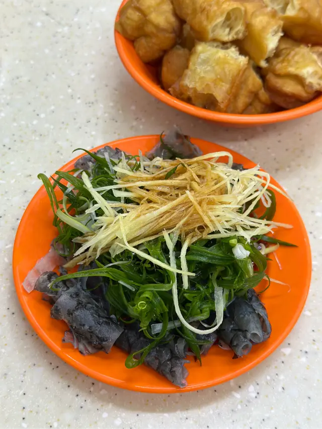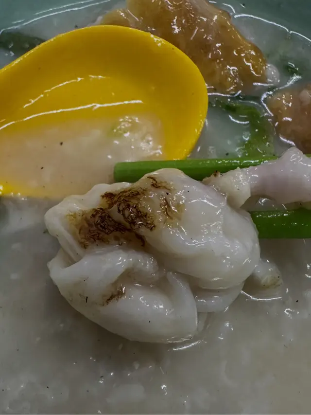 🐟鱼腩鱼卜粥,鱼的各个部位细分化,鱼腩和鱼卜,大火爆香,去除腥味。表面微黄,淡淡的焦香。料多粥少,肉眼可见的料足,满满一大碗,有六大块鱼腩,火候可以说是掌握得炉火纯青,鱼肉细嫩,甚至能感受到鱼肉纤维的弹性,这就非常有功底了。鱼卜,吃到五个,滑溜细嫩,又不失韧劲。鲜滚热辣,吃着没有任何腥味,柔和的鱼鲜~搭了一份油炸鬼,空口吃,软绵。讲真,不是我喜欢的油炸鬼口感,但放粥里泡热后吃着也还可以。爽滑鱼皮,皖鱼皮脆爽,夹杂着葱姜,调味相对比较单一,吃个食材的纯粹。这家比旺角花园街市里的妹记好吃,妹记的鱼粥酒味和甜味重了些,也比我在潮汕地区吃过的几家鱼粥好,食材更有品质。优质优价,宝藏老店,下次我要早点来吃鱼鲛粥~