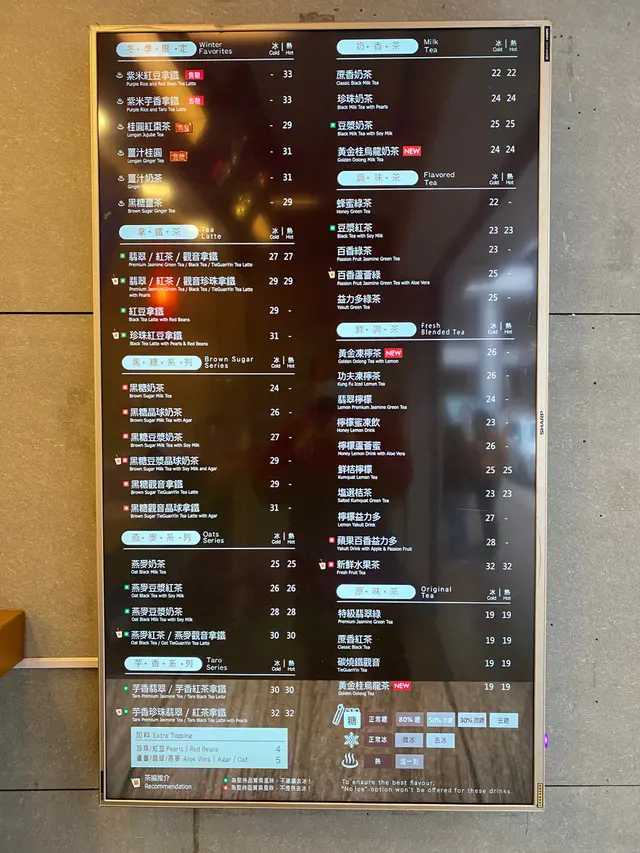 我落單買一杯珍珠奶茶($24)和一杯黑糖晶球奶茶($26),店員問要鮮奶或奶粉。我答了鮮奶,付款拿到單後發覺變了紅茶珍珠拿鐵($29)和黑糖觀音晶球拿鐵($31)。