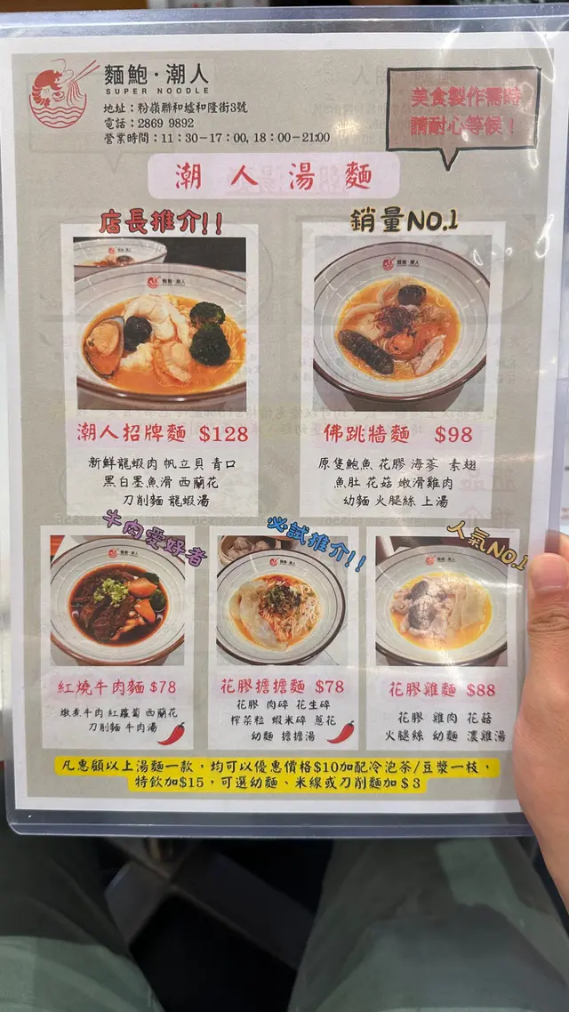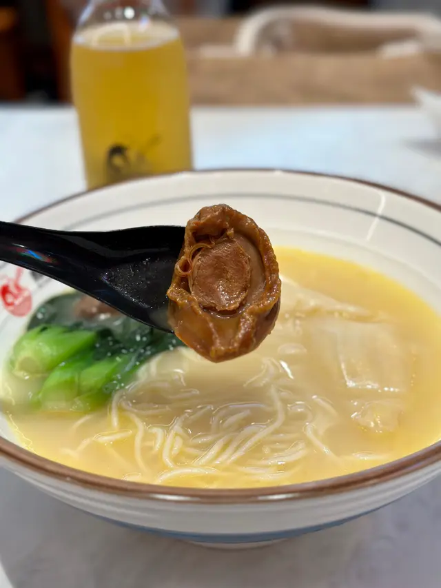 呢個麵係用濃雞湯做湯底,雞湯非常鮮甜,真係飲到雞湯嘅甜味,同時咸鮮味亦都剛好,濃濃嘅雞味🤤 而且個湯飲完完全唔會覺得口乾,無味精!另外,花膠煮得好淋,好滑,亦都食到花膠嘅膠質口感😋,唔係劣質花膠,同雞湯一齊食好配搭。鮑魚亦都煮得好入味,鮑魚汁好夠味,鮑魚亦都好煙韌😝!花菇亦煮得好淋,有好香冬菇味!再配上幼麵一齊食,索湯一流!整體黎講係一碗食完好滿足嘅一碗麵☺️!
