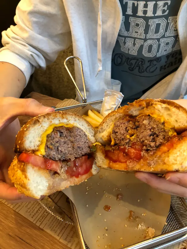 漢堡扒肉汁也多 ,蕃茄新鮮不酸