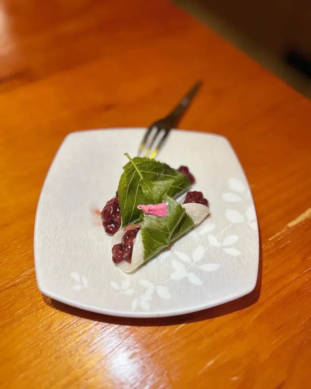 煎嘅糯米糰好有米香、煙煙韌韌,紅豆綿密香甜,再配醃漬的紫蘇葉、櫻花🌸一齊食,特別得嚟好好食。
