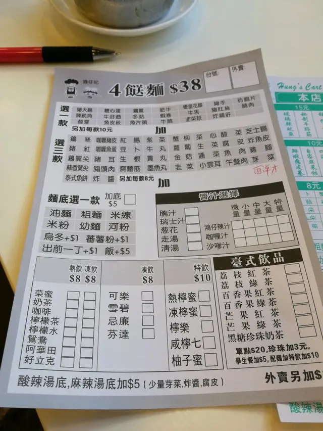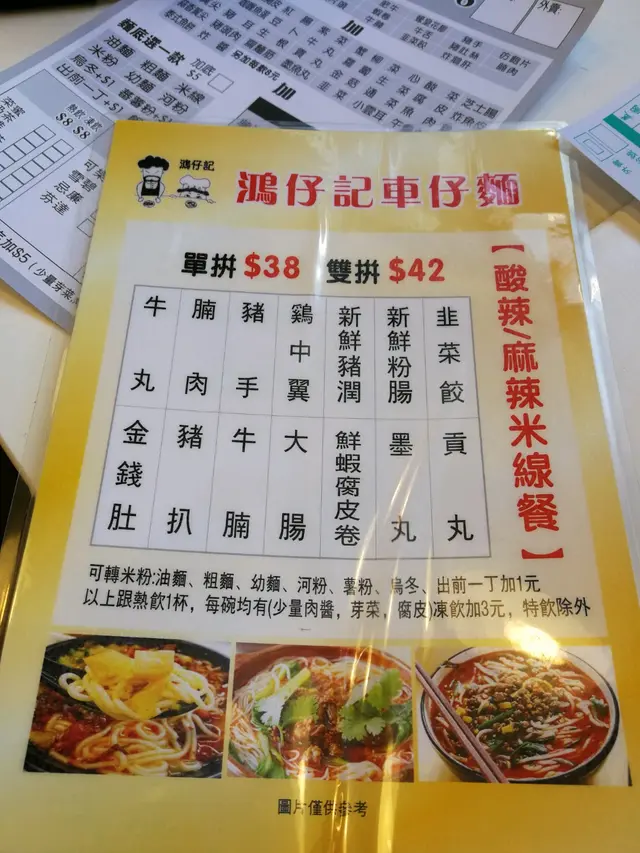 首先睇吓鴻仔記嘅鎮店車仔麵,價錢正常,選擇也算多,個人特別推介鮑汁花膠,而牛舌更唔係每間車仔麵可以揾到嘅餸。秘製牛双筋骨膠感極重