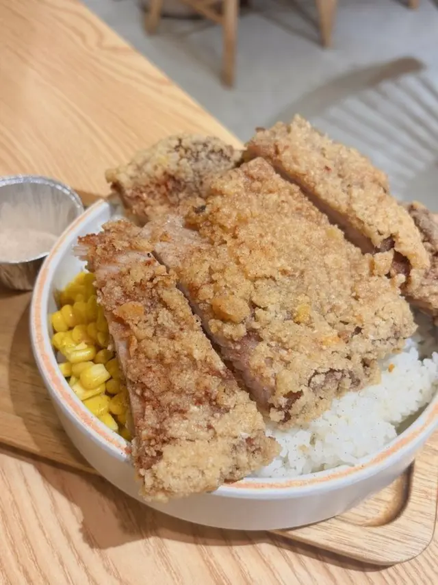 炸豬扒是很大的一塊,底下還有半隻溏心蛋