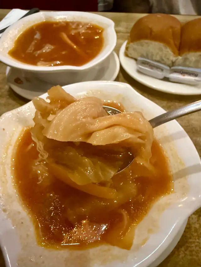 好鍾意佢嘅羅宋湯,大大碗真材實料,加少少胡椒粉,將個牛油餐包浸落去,小時候侍應阿叔教我嘅食法