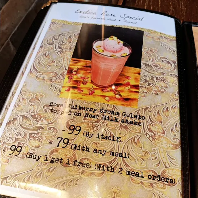 Rose mulberry cream gelato topped on rose milk shake🍹 $99, 買一送一價