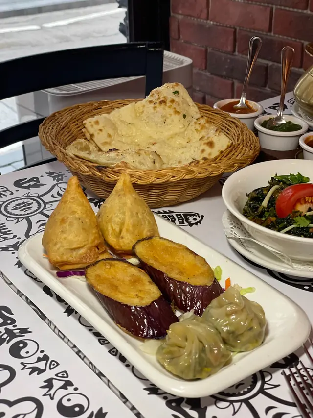 前菜有三款,有香脆大隻的咖喱三角餃、炸茄子及外皮煙靭的尼泊爾傳統蒸餃𝐌𝐨𝐦𝐨! 我超愛吃𝐌𝐨𝐦𝐨的,愛吃餃子的朋友必吃,别有一番風味(≧▽≦)。