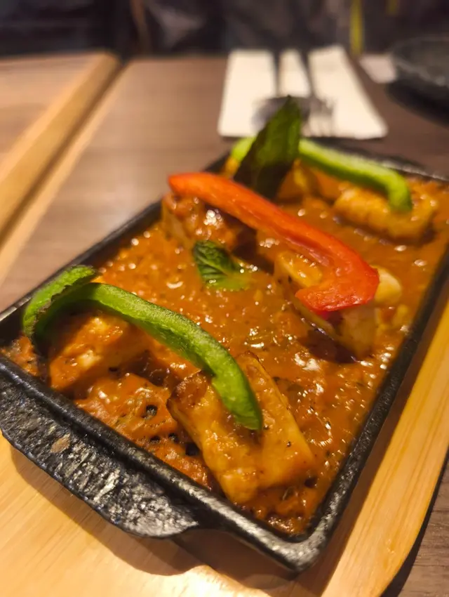 🧀另外仲試咗個「鐵板鹹香芝士)」(Hallumi:Halloumi 係一種來自賽普勒斯的半硬質、白色起司,以其獨特的高溫烹飪時不融化的特性而聞名。 它通常由山羊奶、綿羊奶或牛的奶製成,味道溫和帶有淡淡的鹹味和奶香味),芝士烤得啱啱好,外皮硬硬地,有啲似豆腐乾,配埋青紅椒,鹹鹹地都幾香口。