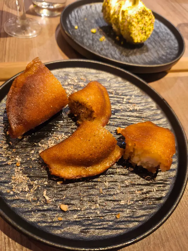 🥟甜品試咗「Katayef」,係一款炸完再浸糖水嘅甜餡餅,有芝士同肉桂兩款口味。口感濕潤但偏甜,如果鍾意甜食嘅人一定好鍾意😍。