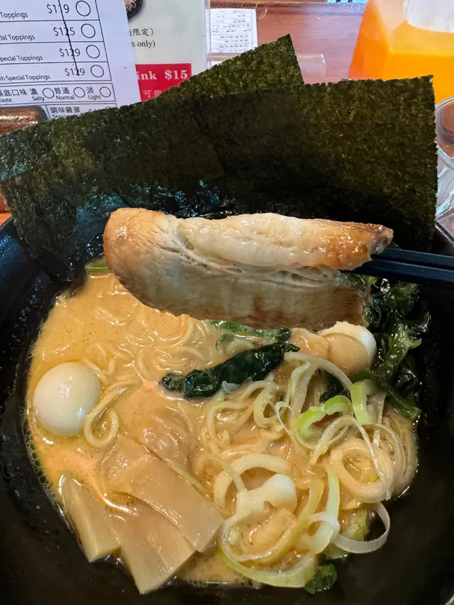 湯底好濃厚,上左菜之後我要攪一攪個麵同d湯先食得,我選幼麵,普通硬度,麵底ok!唔會好淋好硬,不過d湯真係有啲鹹,件豚肉有燒邊,食到有炙燒味道👍🏼不過就多左d肥肉佔左塊豚肉1/3。