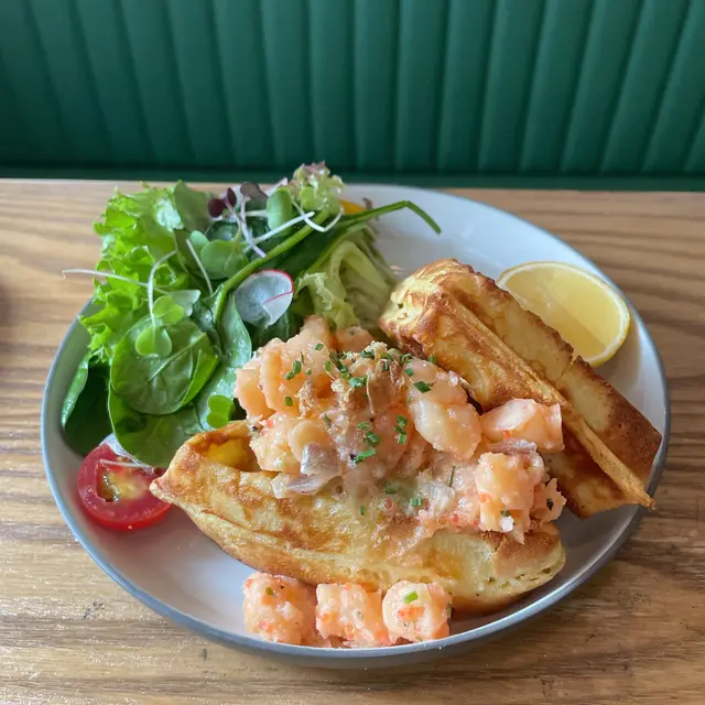 窩夫外脆內軟好似食緊雲朵,牛油果熟度完美,明太子醬微辣帶出海蝦鮮甜。唯一係窩夫甜度偏高,如果鹹食配料比例再多啲就更正!