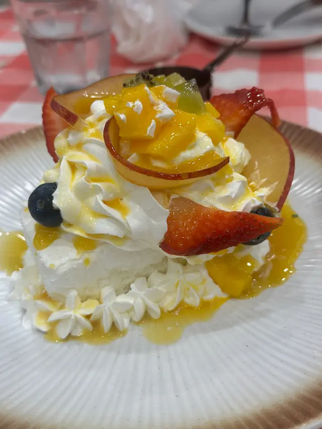 外層香脆,配上酸甜適中的新鮮水果與果醬,甜度控制得宜,口感輕盈不膩,是一道結構與味覺兼備的甜點。