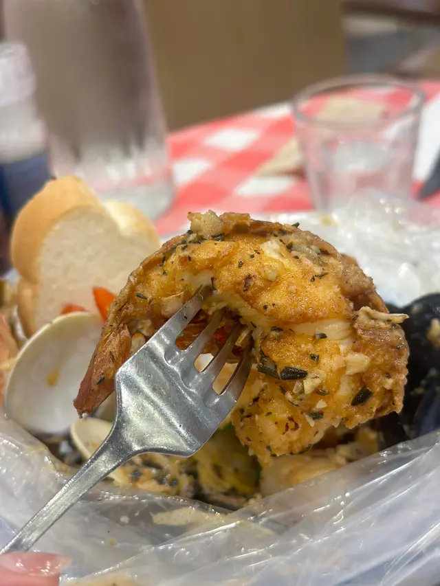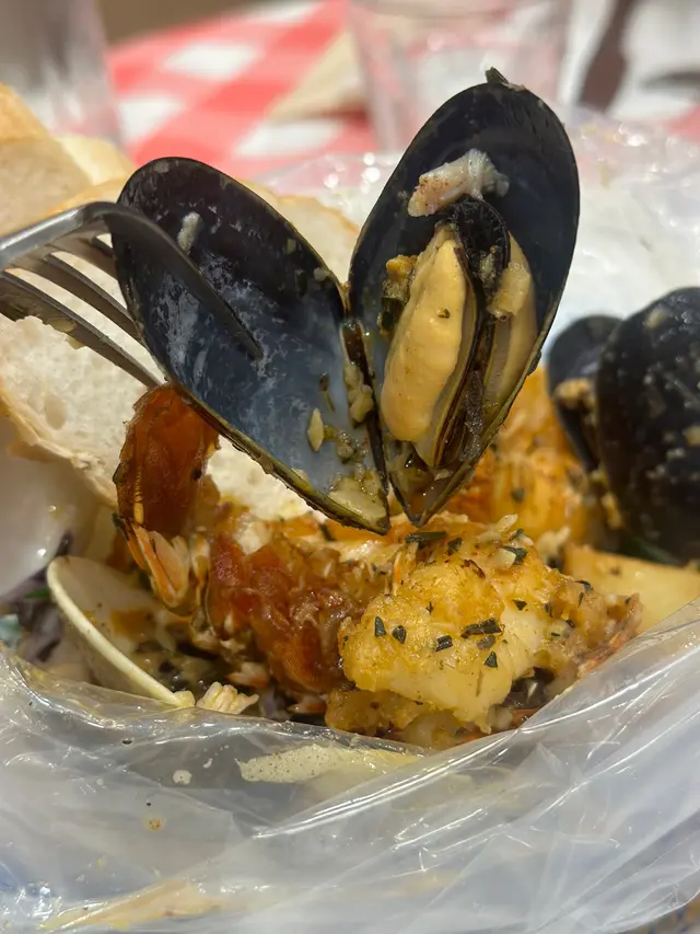 以蒜香及黑椒為基調,香料比例恰到好處。袋中包括青口、帶子、紅蝦及龍蝦等新鮮海產。青口鮮滑帶奶香,帶子煎至剛熟,紅蝦鮮甜,龍蝦肉質緊實彈牙。