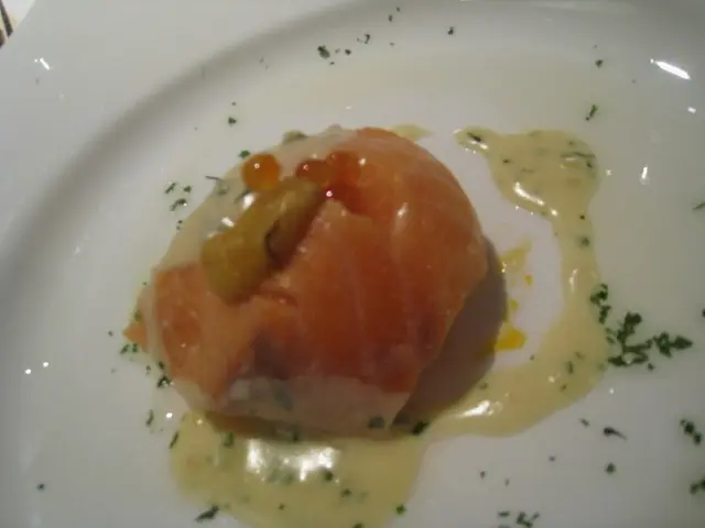 不用等多久,便送上Twyst今晚提供給我們首個頭盤-Slow cooked salmon with sea Urchin & Salmon Roe,Miso & Ginger Sauce