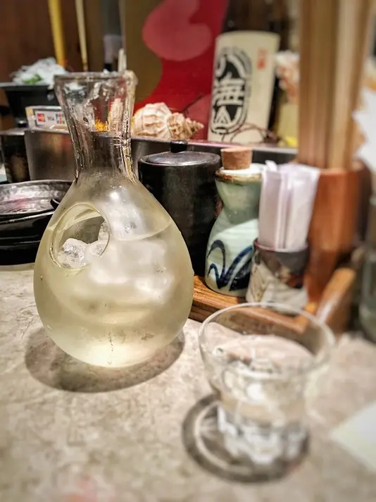 由於友人行程緊密,所以事前並沒有預早訂檯。到友人確定當晚時間地點,再致電銀次,已經太遲。接線生回答這晚訂座已滿,幸好同時也告訴我銀次每晚都會預留walkin位置,可以過來碰碰運氣,到達之時剛好有兩個吧檯位子,先點一瓶清酒,就開始風花雪月起來。