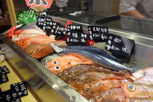 這裡供應的魚類會視乎貨源,每日都或會有驚喜。這晚我們在海鮮櫃看上了伊佐目魚和金目鯛,一於一條鹽燒、一條煮鍋。