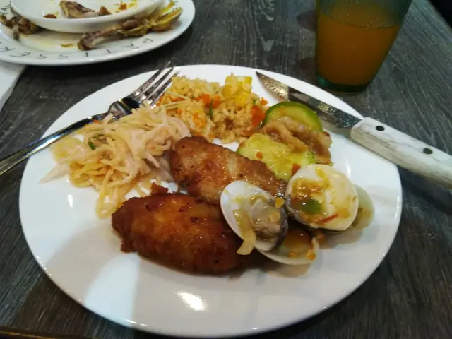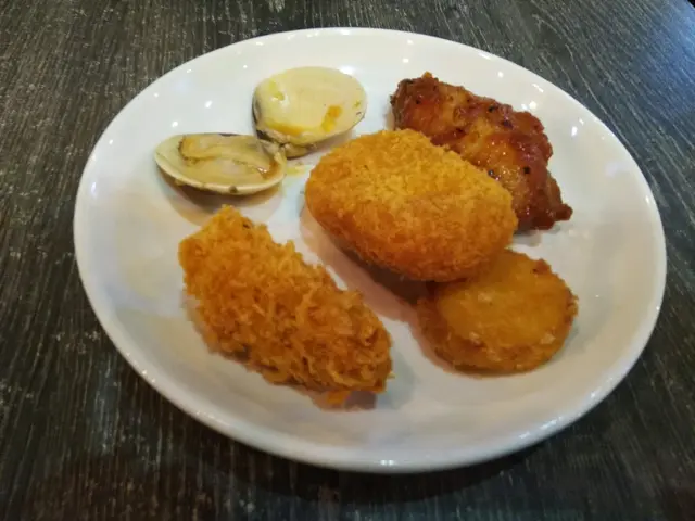 自取食物區有餐湯、沙律、幾款肉類食物如雞翼、自助串燒,還有炸物如炸帶子、炸生蠔、炸薯餅等,意粉和飯都不是普通的淨意粉和白米飯,而是有配料的白汁肉絲意粉和蕃茄意大利飯。意大利飯雖然做得一般,但比起白米飯有誠意得多了。意粉則非常好味,值得一讚。