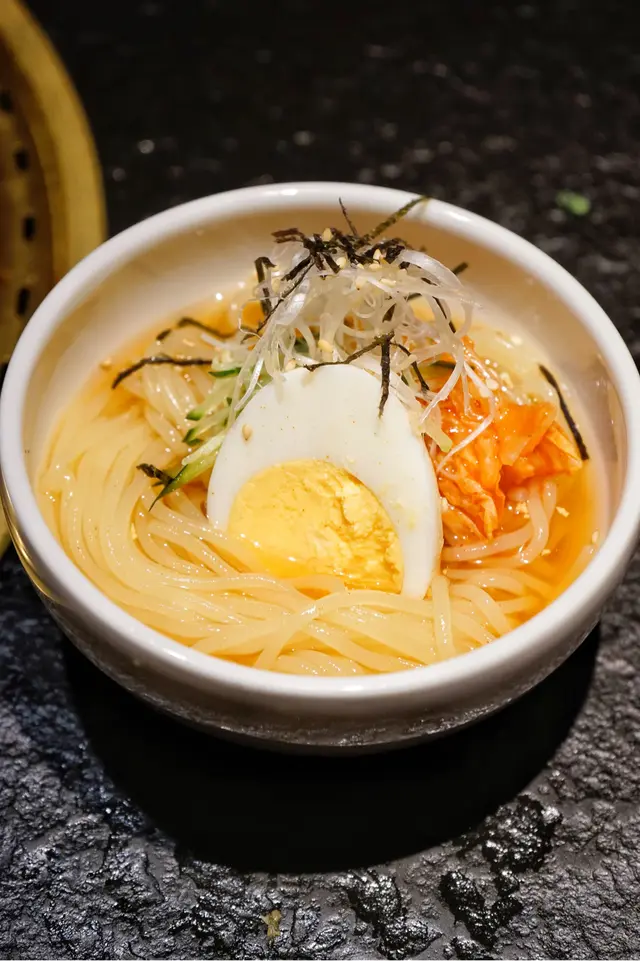 餐廳喺日本盛岡自設廠房,所以先整到優質嘅冷面,湯底夠冰凍,食落相當彈牙。