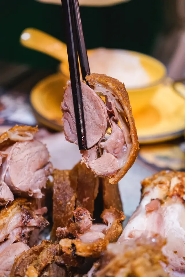 超大份嘅豬手,外層嘅豬皮油炸到極之香脆,豬皮底下又有一層薄薄嘅脂肪,底層係充滿咸香嘅豬肉,口感相當有層次。