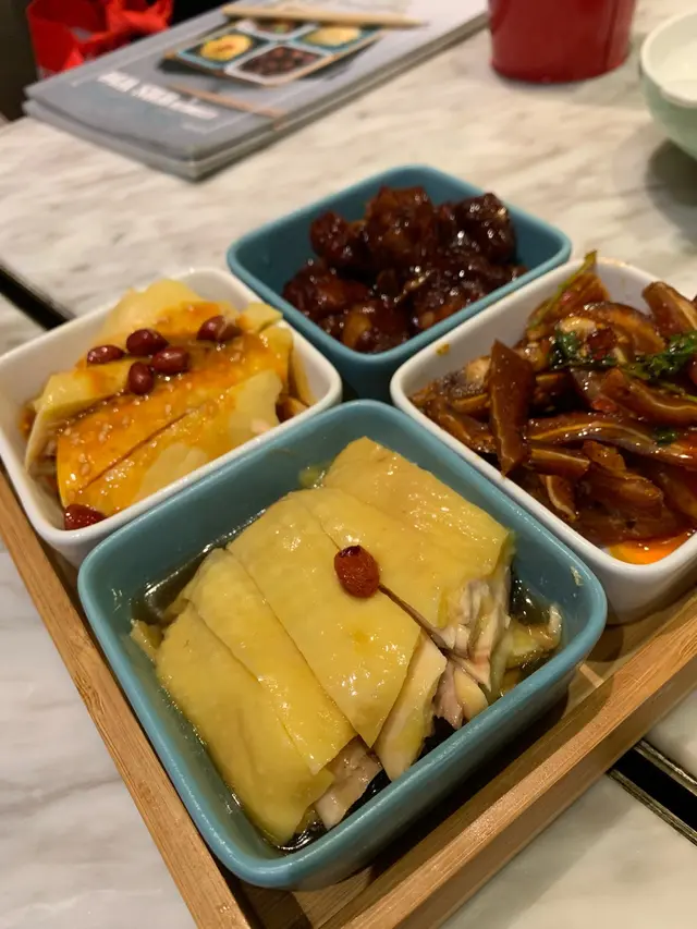 南小館四小拼 (口水川雞,花雕白雞,糖醋排骨,涼拌豬耳) 未必要配呢四樣嫁,佢有其他簡