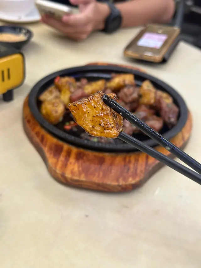 除咗羊腩煲,仲一定會嗌每次都必點嘅鐵板蜜椒薯仔牛柳粒,私心覺得呢款菜式其實係新哥整得最好食