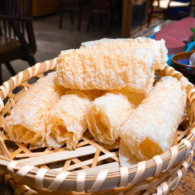 響鈴是新鮮即炸的,香脆可口,浸入湯底2秒便要立即吃,保持到口感之餘亦沾上了香濃的湯底。