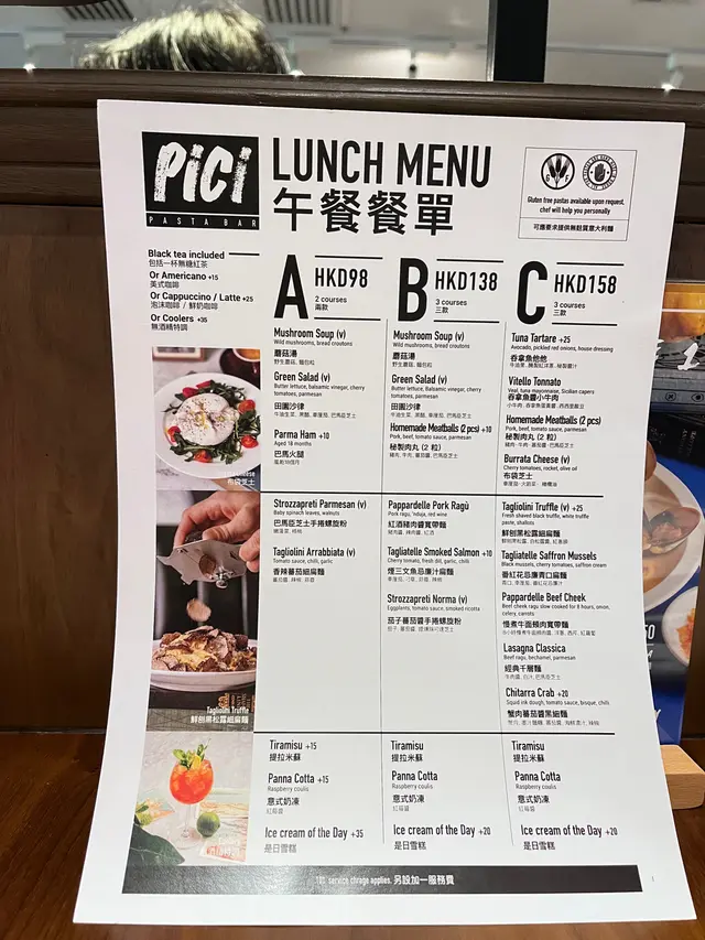 稍欠誠意的午餐🤣 or#tm67271324等級32024-07-172K 瀏覽 關注 無限時食店現在很難找到,這間餐廳既不限時,又系食手工意粉,所以就同朋友去朝聖一下。這𥚃卡位多,無論環境、氣氛都0 K,有A、B、C午餐揀,前菜蘑菇湯、沙律、巴馬火腿都份量足夠,材料新鮮,味道可以,主菜系煙三文魚忌廉汁扁麵、香辣蕃茄細扁麵、巴馬臣芝士手捲螺旋粉,食到系手工意粉🫰🏻,味道正常,飲品朋友加$25飲cappuccino,朋友話飲落口夠厚身,有咖啡香味😎。點解甘凍甘硬😵💫可惜!最敗筆系D餐前面包,用紙袋入住,薄而細小,而且又凍又硬,見到有D O嘴,好難食到入口,記得以前食過系熱和脆的!希望餐廳可以跟進下🙌🏻,5好破壞名聲🙌🏻23以上食評乃用戶個人意見 , 並不代表OpenRice之觀點。讚好分享稍欠誠意的午餐🤣 Pici https://s.openrice.com/QrbT04GTL00檢舉 張貼 評分--味道3環境3服務4衛生--抵食用餐時段午餐