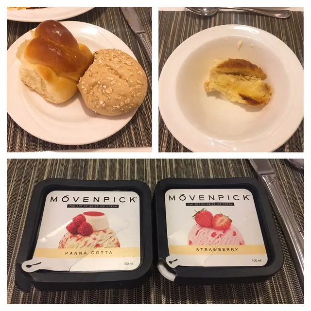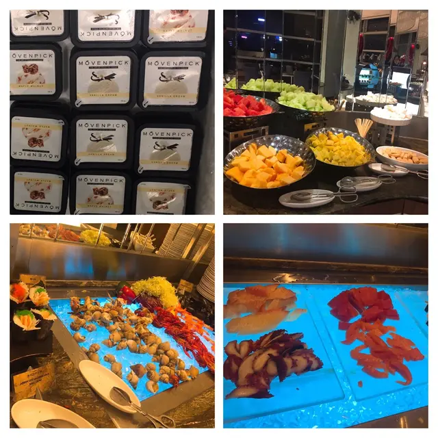 生果係哈蜜瓜最甜,食左好多,其他不用吃😂,❗️最要讚既係movenpick雪糕呀,總共有六種味揀,雲呢拿朱古力咖啡士多啤梨同楓糖,全部味都好好食,我食左超過6盒❗️