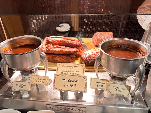 熱菜區Carving有剛出鍋的烤羊排裹着迷迭香的焦香,仲有燒烤十足西冷牛排,醇厚鴨肝多士。最欣賞仲有不同國際化嘅海鮮,中式蒸石斑魚,紅燒肉花膠扒,忌廉青口,日式清酒鮑魚。令食客有選擇困難症,眼花撩亂😍 不過小朋友先做選擇,大人全部都要一啖!唔可以浪費食物!
