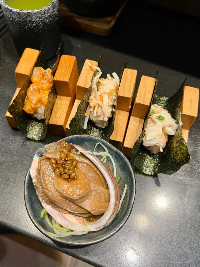 烏賊新鮮彈牙,黑松露香氣濃郁,配上海苔超夾!🍴 入口滑嫩又高級,開胃之選!
