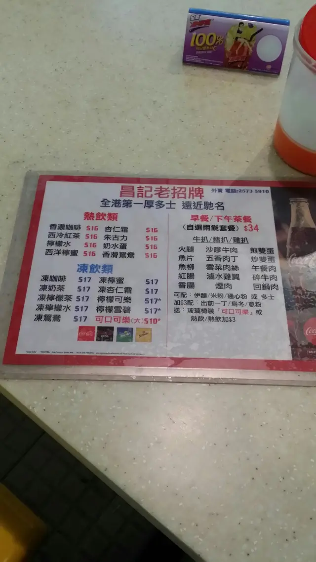 雖然「昌記」的飲品跟餐價錢,沒有太明顯的折扣優惠,但是由於「昌記」「全港第一厚多士」價錢不算十分昂貴,所以加上飲品,最後價錢也只不超過四十元。