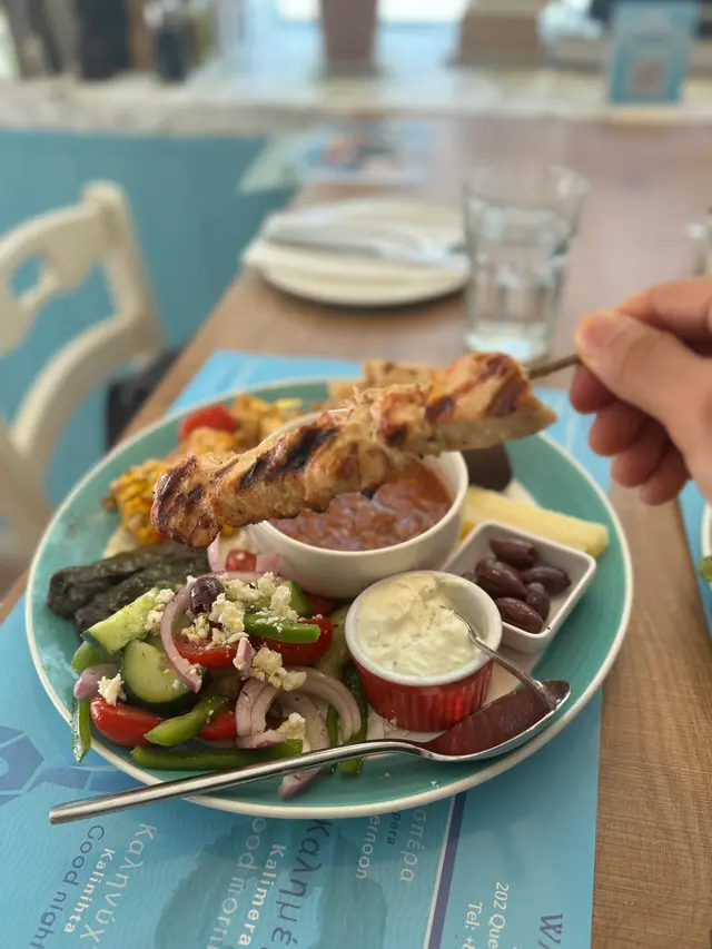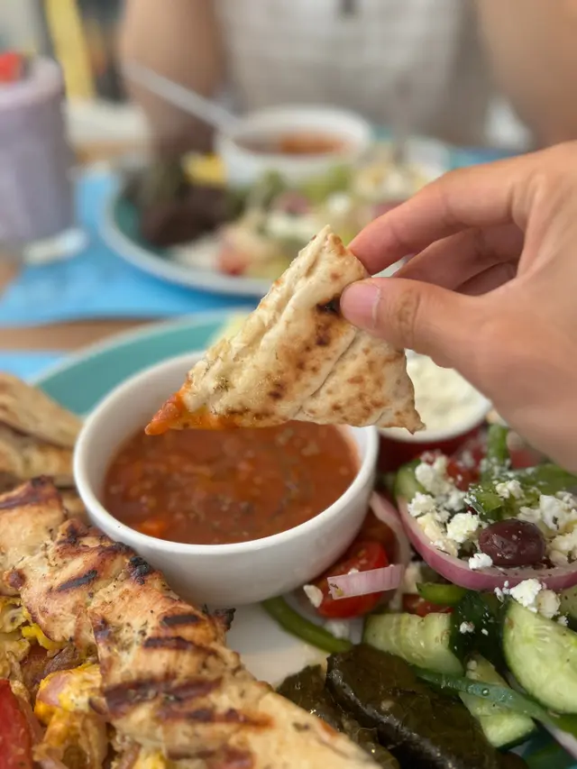 Souvlaki: 希臘烤肉捲餅,有雞肉和牛肉選擇,肉質鮮嫩。🍢