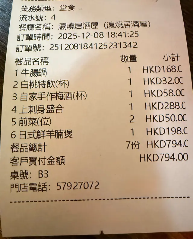 第一次食日式羊腩煲。羊腩的味道比中式香,肉質比較有嚼勁,煲底都一樣有腐竹、馬蹄、冬菇等。配上一碗白飯,即時感到暖笠笠。冬天可以不防一試。