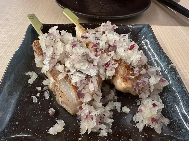 去到佢仲推介吞拿魚面頰同南非鮑魚,我地揀左前者,仲點左支白桃酒,因為食串燒冇理由唔飲下酒