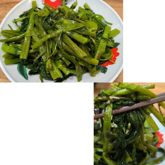 呢碟馬拉盞通菜份量都好多,唔會好油同好咸,莖同葉大約一半一半,好味!