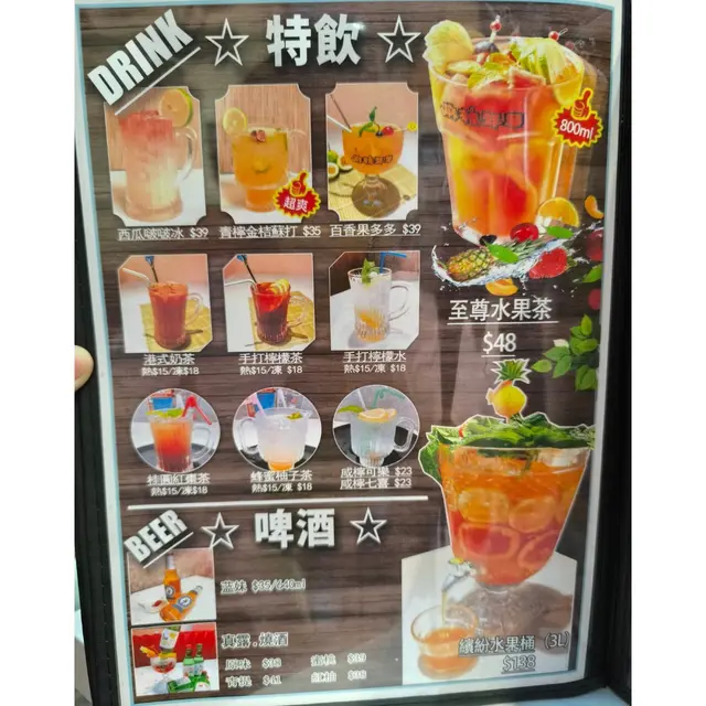 呢杯至尊水果茶上次叫咗3L,真係多人食野先好叫3L水果茶,水果茶入面有西瓜、提子、橙、青檸同蘋果等,跟套餐叫水果茶就有半價,呢杯800ml大約可以分到四小杯,二人份量都好足夠飲,原價要$48一杯有800ml,如果想叫3L嘅話,原價就要$138