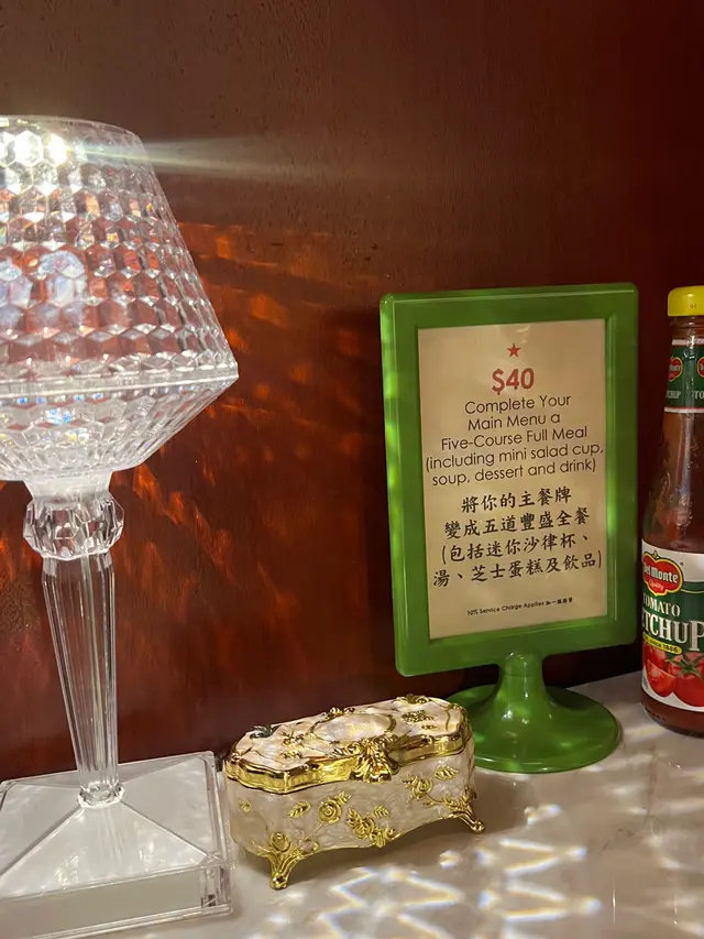 外面望落去好似係一間好懷舊嘅港式西餐廳,好鍾意啲碟同埋擺盤都好靚~每張枱有一個光影燈,所有嘢都好似有濾鏡咁( ´▽`)🫧