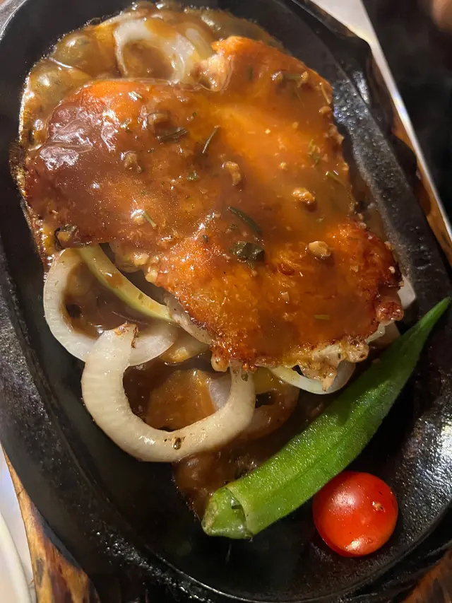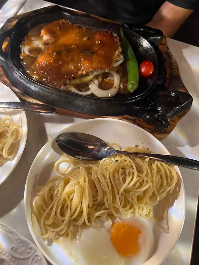 ❥ 鐵板雞扒配溫泉蛋•意粉($80)