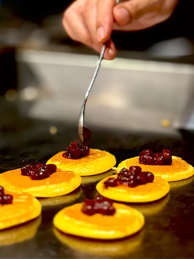 即場炮製日式銅鑼燒,中間夾住十勝紅豆蓉及雪糕,為整頓鐵板燒劃上完美句號。