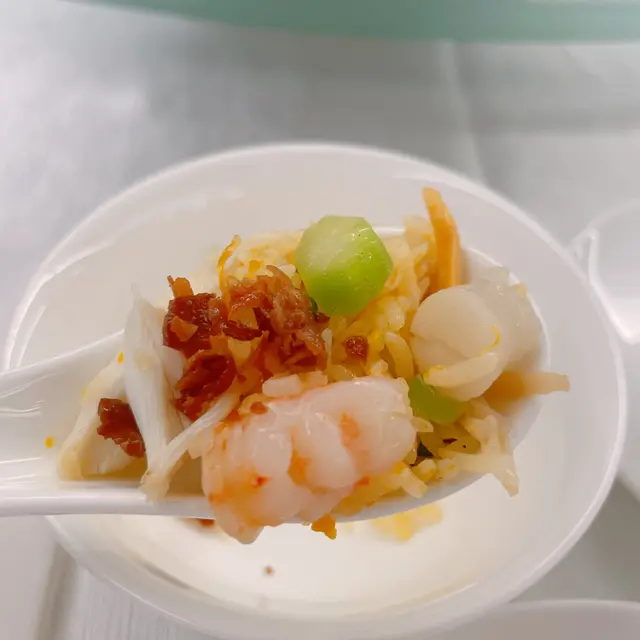 侍應揭蓋時脆米「滋滋」聲超治癒!蝦仁同帶子粒睇得出係即炒,飯底乾身到一粒粒識跳舞,最正係撈勻脆米後嘅雙重口感,唔怪得隔離枱encore。