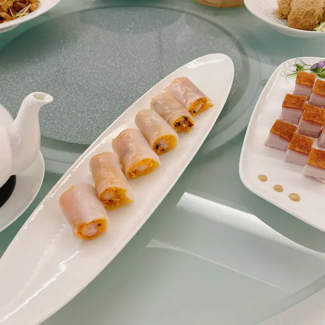 推開深木色大門,柔和嘅黃光襯住水墨畫屏風,四人被安排喺卡位,座位間距寬落唔逼狹。 🍵壽眉茶湯金黃帶蜜香,茶位$30/位合理。侍應介紹菜式時會微微蹲低,仲提醒OpenRice訂位有85折👍。包廂區走廊掛住節氣裝飾,私隱度高到傾八卦都唔怕。食物未到先聞到鄰桌砂鍋飯嘅鑊氣香,加班嘅疲勞即刻醒神一半!