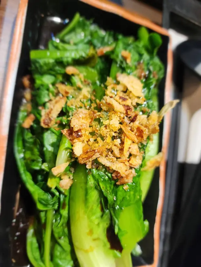 燙青菜簡單卻不失風味,青菜新鮮脆嫩,淋上蒜蓉醬油,保留蔬菜的原味,健康又開胃。最後的芋圓仙草凍作為甜點完美收尾,芋圓軟Q有嚼勁,搭配滑順的仙草凍,甜而不膩,口感層次豐富,令人滿足。