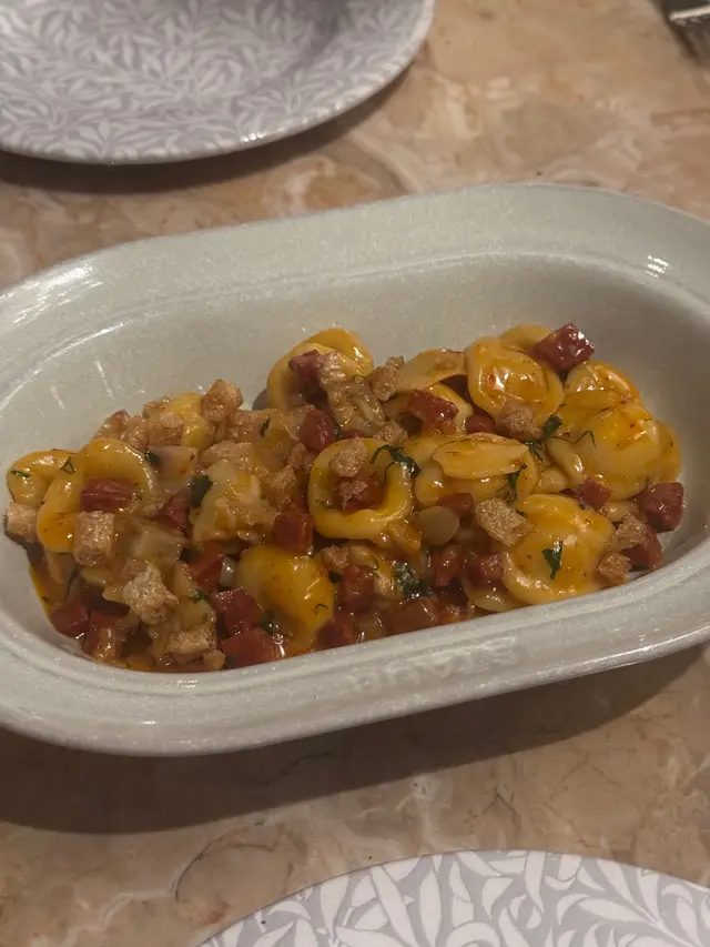 好多人都推介呢度嘅意粉,我就叫咗比較特別嘅貓耳朵意粉,貓耳朵口感煙韌😙搭配豬手粒、辣肉腸及炸豬皮,鹹鹹辣辣幾惹味😛