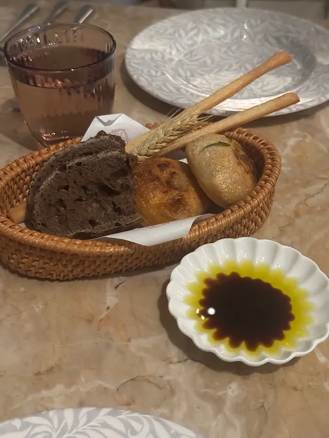 有三款麵包,唔夠可以再添。蒜頭圓包香草味突出,暖暖地幾脆口,黑麥麵包外脆內軟口感幾好👍🏻