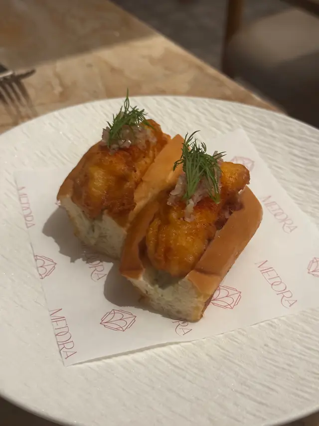 另一款主菜揀咗海螯蝦包,牛油brioche表面脆口,咬落鬆軟帶少許甜味🤩中間嘅炸螯蝦口感好鬆脆,炸粉夠薄,蝦肉彈牙鮮味,底下搭配惹味嘅他他醬,加上檸檬汁及刁草,味道層次出色😋