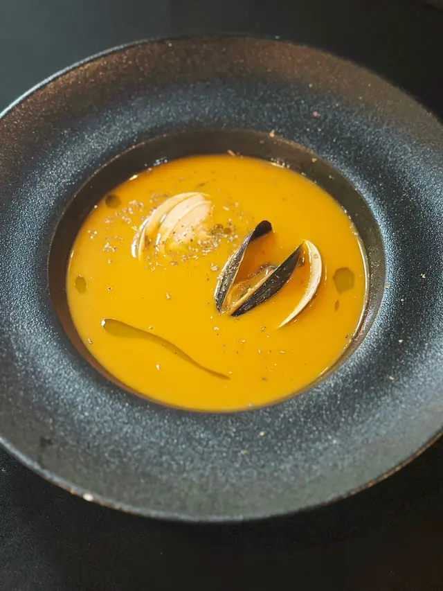 海鮮濃湯 : 餐湯味道係濃郁嘅海鮮味,再加埋飽滿青口及厚肉沙白,超美味餐湯