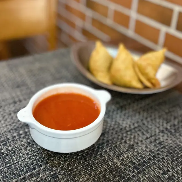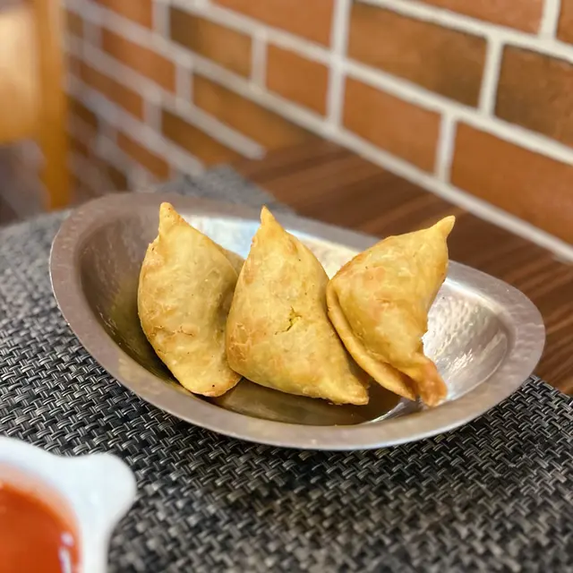 裡面包住薯仔同青豆內餡,配薄荷醬食都唔錯👍🏻👍🏻