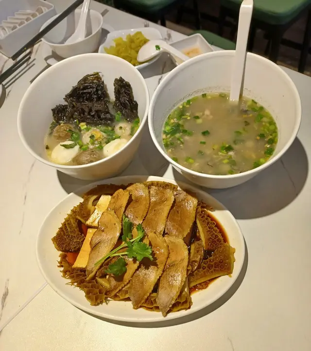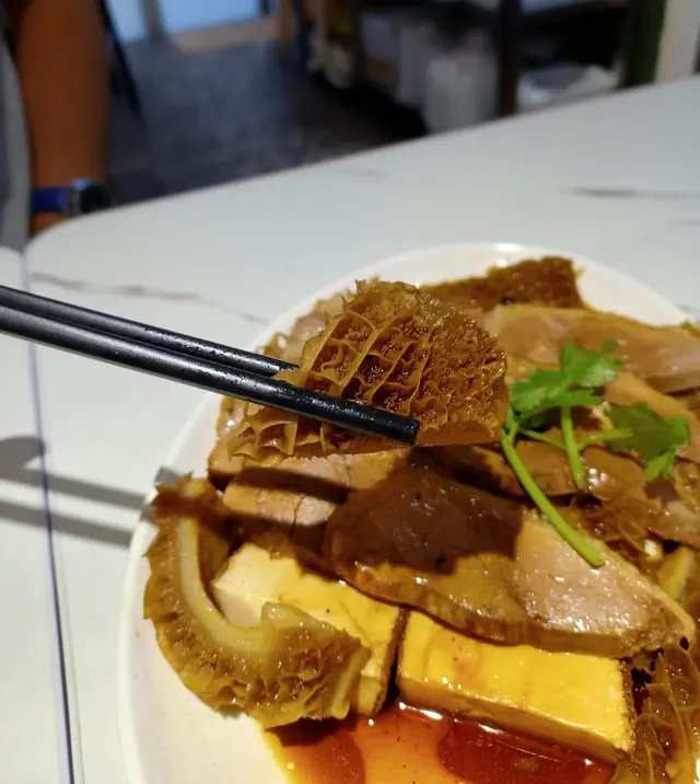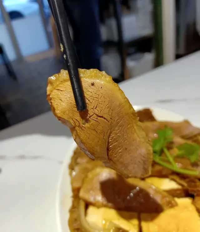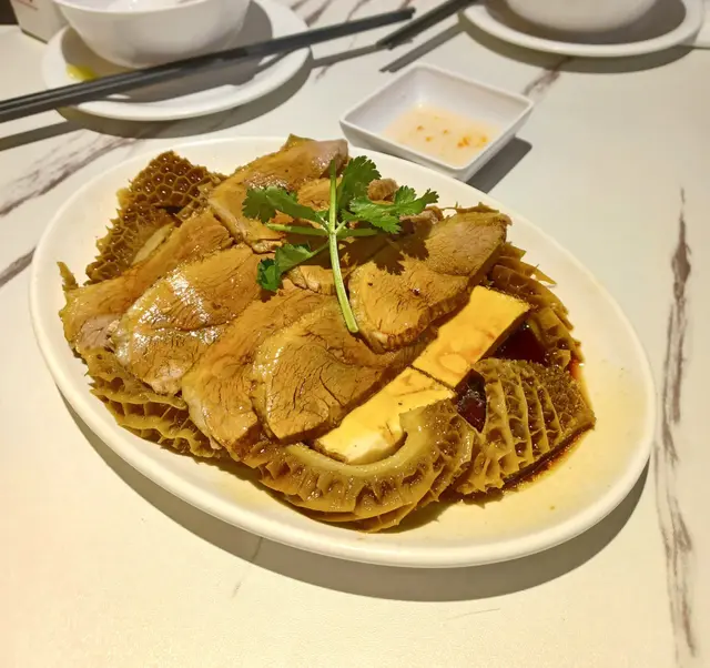 鮮嫩鵝片配搭爽口入味的金錢肚,雙重口感。滷水汁沒有一般的濃郁藥材味道,比較淡,更能突出鵝肉的鮮味。配菜還有如豆腐花般滑溜的滷水豆腐,入味之餘,又滲透出陣陣豆香,口感一流。