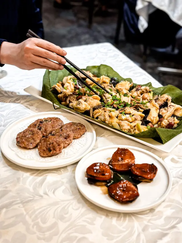 必點推薦!這裏的古法荷葉蒸雞份量非常大,將本製雞加上紅棗、金針菇、冬菇、雲耳、蒜頭等配料,放在荷葉裡蒸。配料雖然簡單,但連同雞的精華和荷葉的香氣,原汁原味,非常下飯!