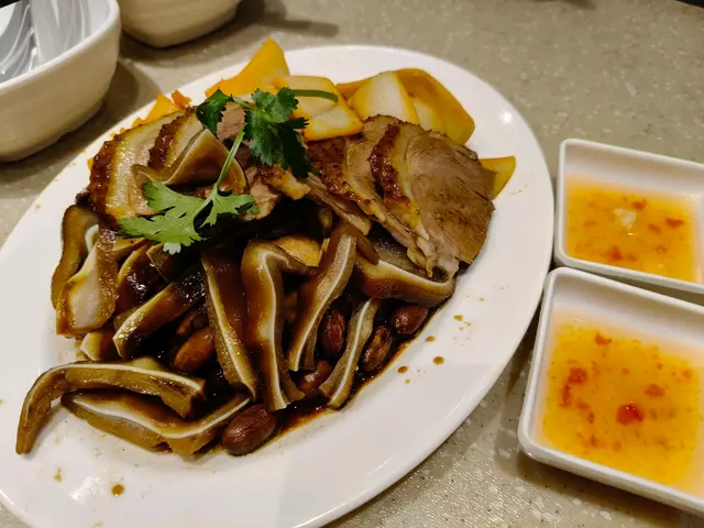我哋揀左「鹵水鵝片拼豬耳墨魚」,標榜用獅頭鵝整,真係一試難忘。鵝肉味好濃,肉質嫩滑,滷水又滷得好入味,食落去真係好正😋,就連墊底嘅豆腐都吸晒滷汁,每一啖都係精華,真係食到停唔到口。