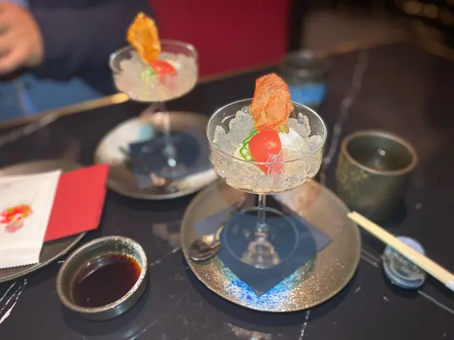 以數種番茄🍅製作而成,當中最特別的莫過於番茄清啫喱,是把番茄熬煮三次把殘渣隔走,令啫喱有蕃茄味又不會需要咀嚼